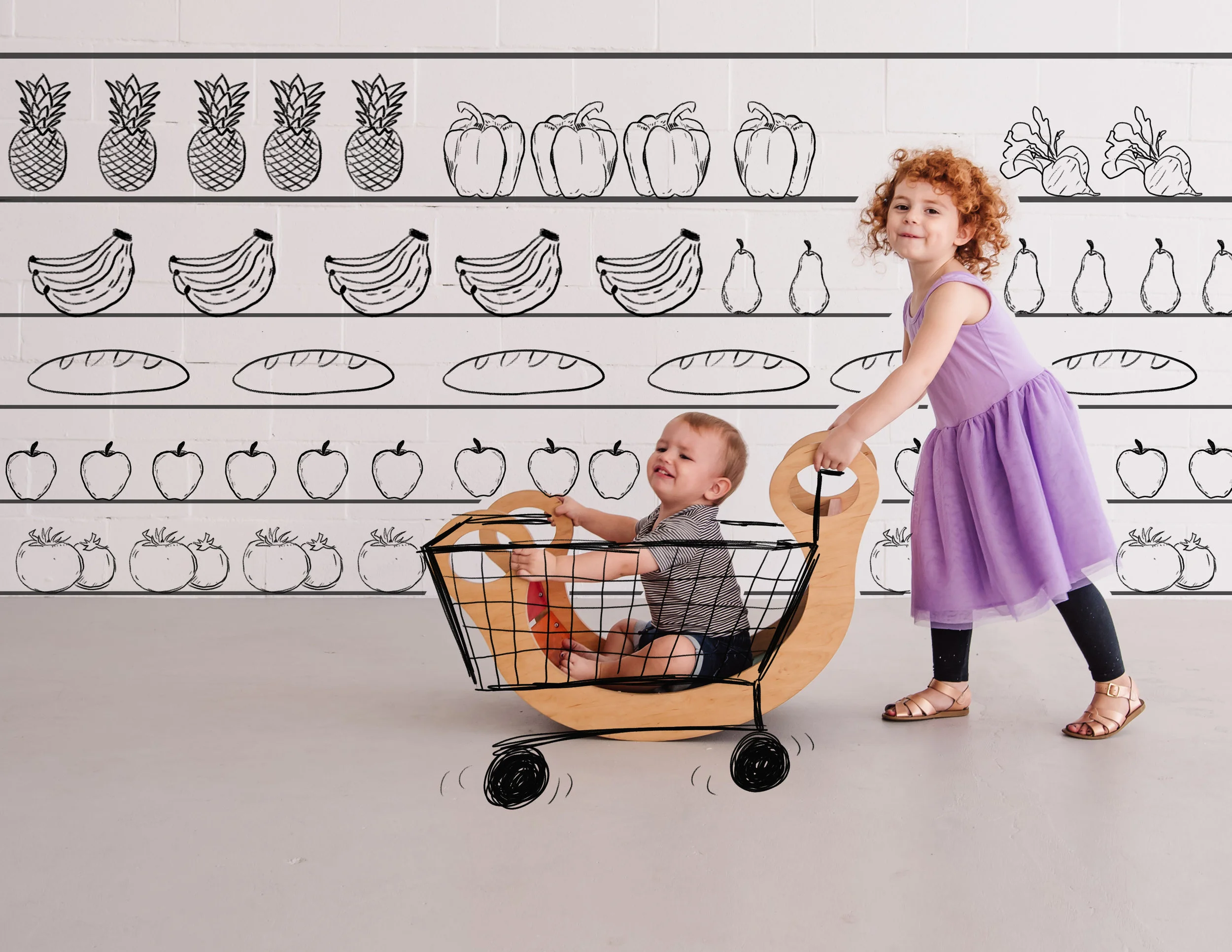 Of course, my kids had other plans when I got to the studio and started to shoot. We had to go back a second day, because they were getting so engrossed in play, or refusing to both play in the same imaginary world at the same time. There weren’t 12 images of them together in one frame. Many of the scenes I ended up shooting were not at all on my list, which was annoying at first, but now that I reflect, they proved my point beautifully. They don’t need toys. They don’t need any with directions, especially not direction from mom. Even my basic guidance of “Sit in the pirate ship with Max” was too controlling for Cora. Instead she insisted that they weren’t in the ocean and she was pushing Max in a cart. Something he was apparently pretty unhappy about. I think he wanted to be a pirate.
